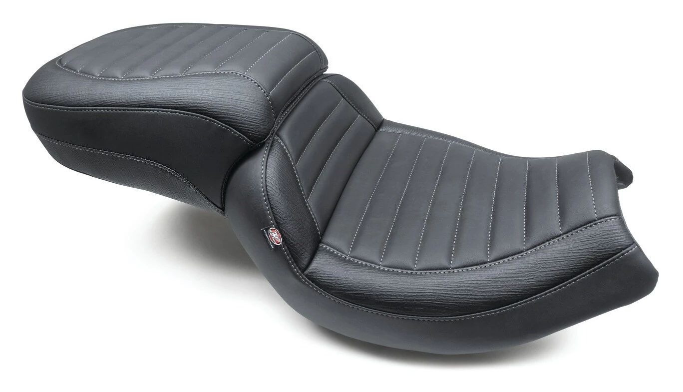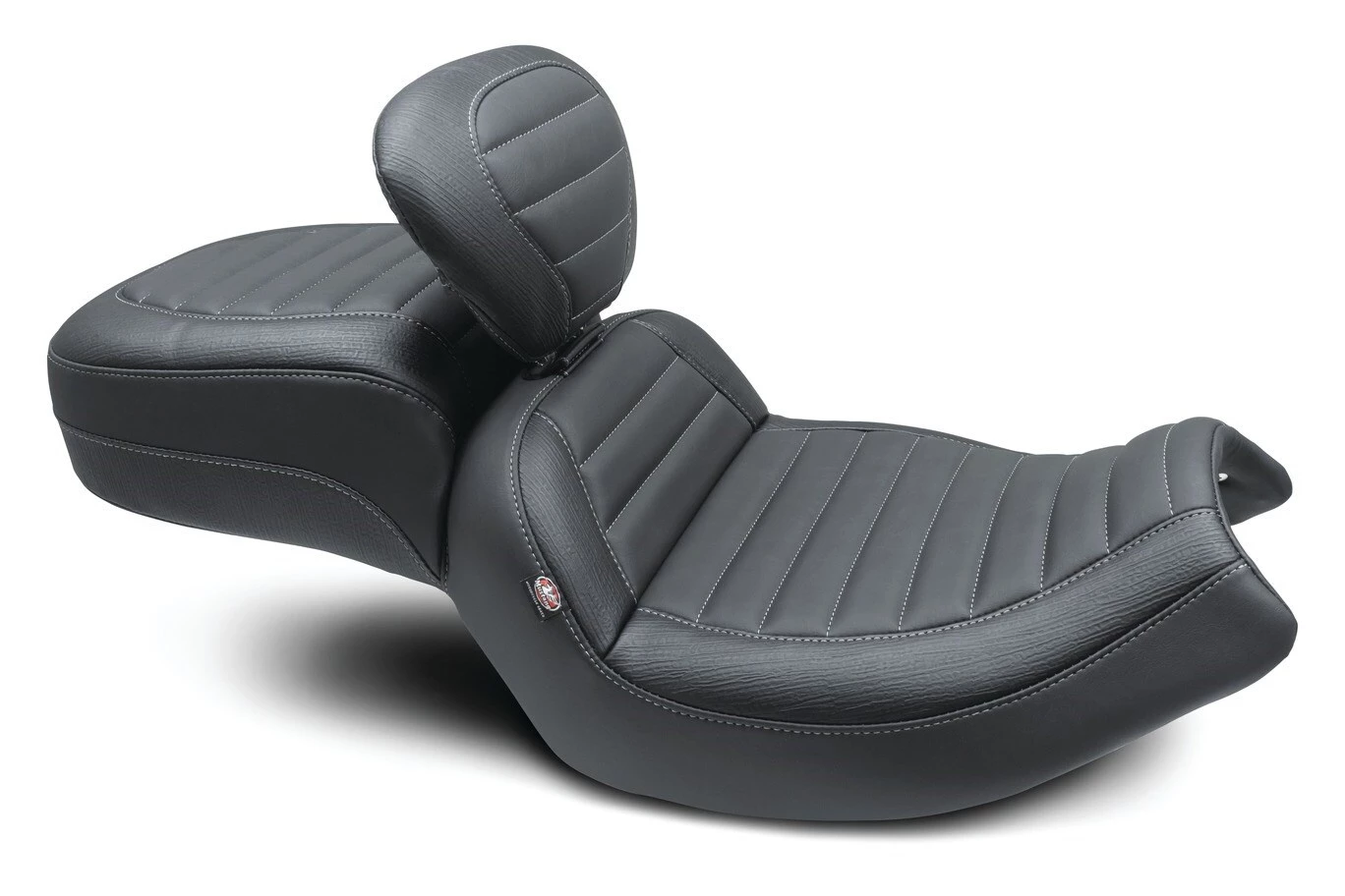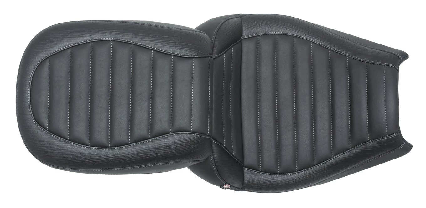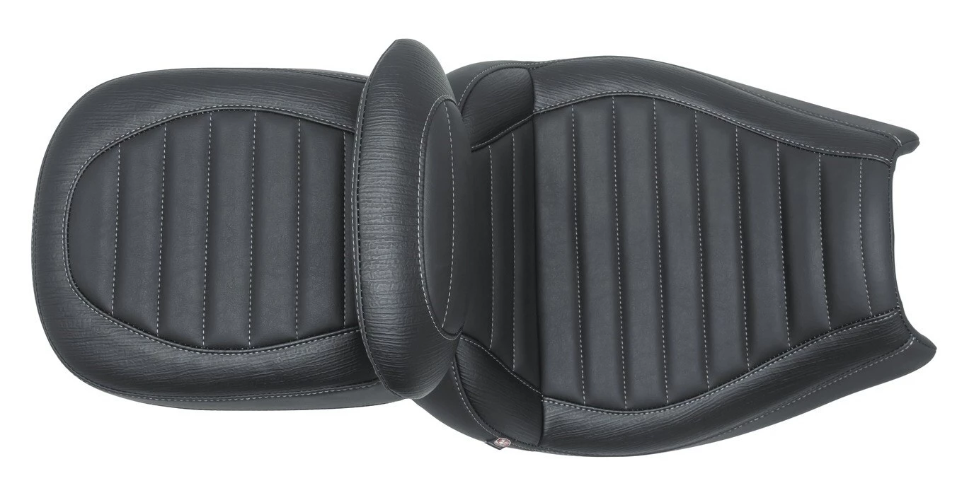 The Standard Touring Seat is designed for riders who feast on mile markers and want all-day comfort combined with curb appeal. Unlike other touring seats, this finely hand-sculpted 2-up saddle accentuates the sharp lines of the Challenger with its sleek bucket styling. The rider and passenger areas are both wider than stock. Combine that with the massive upgrade in support from Mustang’s proprietary controlled-density foam formula, and you’ve got a recipe made for miles of long-haul enjoyment. Available with or without a built-in receiver for a fully adjustable/removable driver backrest.