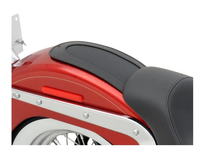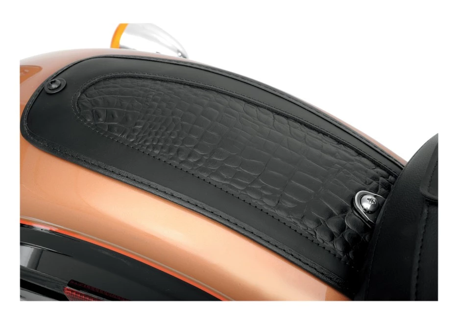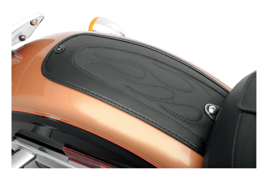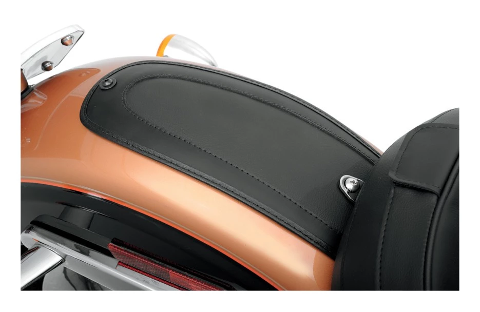 The Drag Specialties Fender Skin features an automotive-grade vinyl center, leather perimeter with a finished edge and a felt liner to protect your paint. Fender skins tie the look of your seat to your bike for a more finished appearance.