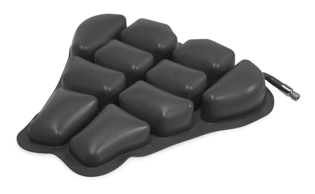 The Wild Ass Air cushion eliminates painful pressure points and promotes proper circulation utilizing adjustable interconnected air cells which conform to the rider’s shape regardless of weight or seating position. Additional benefits are reduction of shock and vibration to reduce lower back pain and air circulation under the rider to disperse heat and perspiration. Recommended for riders who would like reduction of painful pressure points, increased blood circulation, reduced vibration, shock absorption, heat and moisture reduction in the seating area.