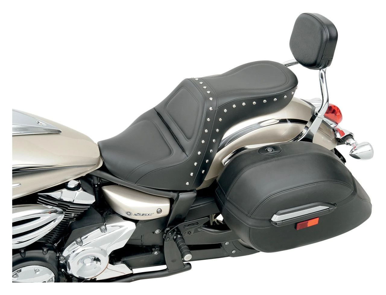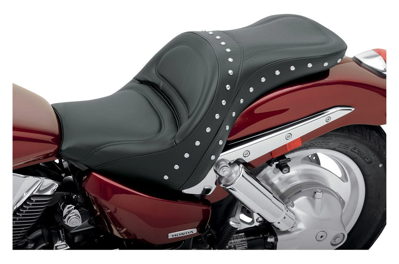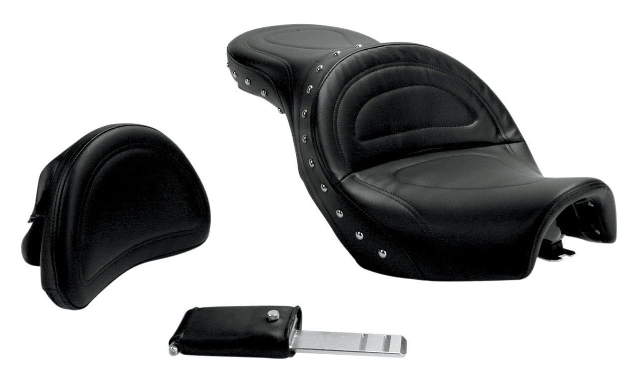 - Designed and contoured for two-up touring comfort; match all studded saddlebags and luggage