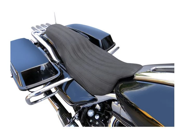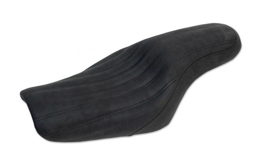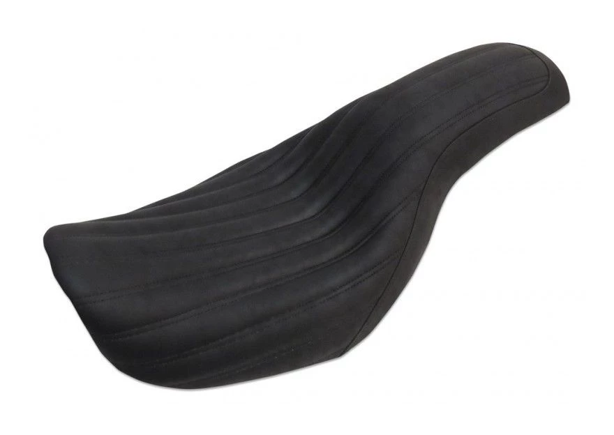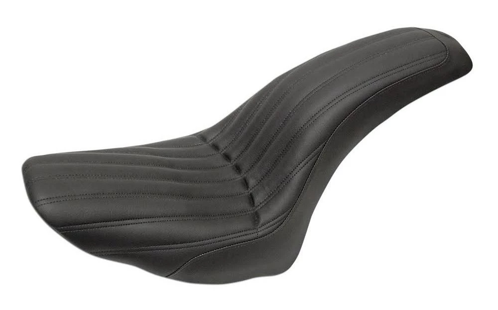 Audacious new custom seat family from Saddlemen, with a brash refinement that instantly transforms your bike. Deep, aggressive ribs are carefully stitched into the brushed SaddleHyde weather resistant cover while hand-crafted progressive density foam and SaddleGel foundations serve up comfort not normally present in a low profile seat. Strong fiberglass pans with plated hardware ensure a perfect fit for a trouble-free install.