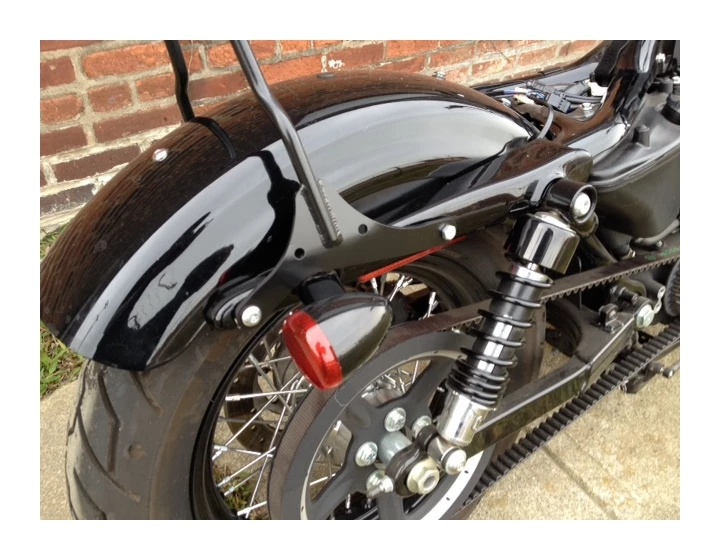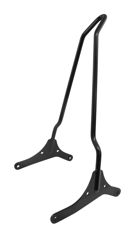 This bolt on kit allows you to mount a sissy bar to your stock swing-arm Sportster. No more worrying about how to secure your gear when hitting the road. This sissy bar is a direct bolt on for most 2004 and up Harley Sportsters with the stock fender struts. Simply remove the stock frame rail cover hardware, and bolt the new sissy bar on with the original hardware. Featuring durable powder coat to protect it from the elements.